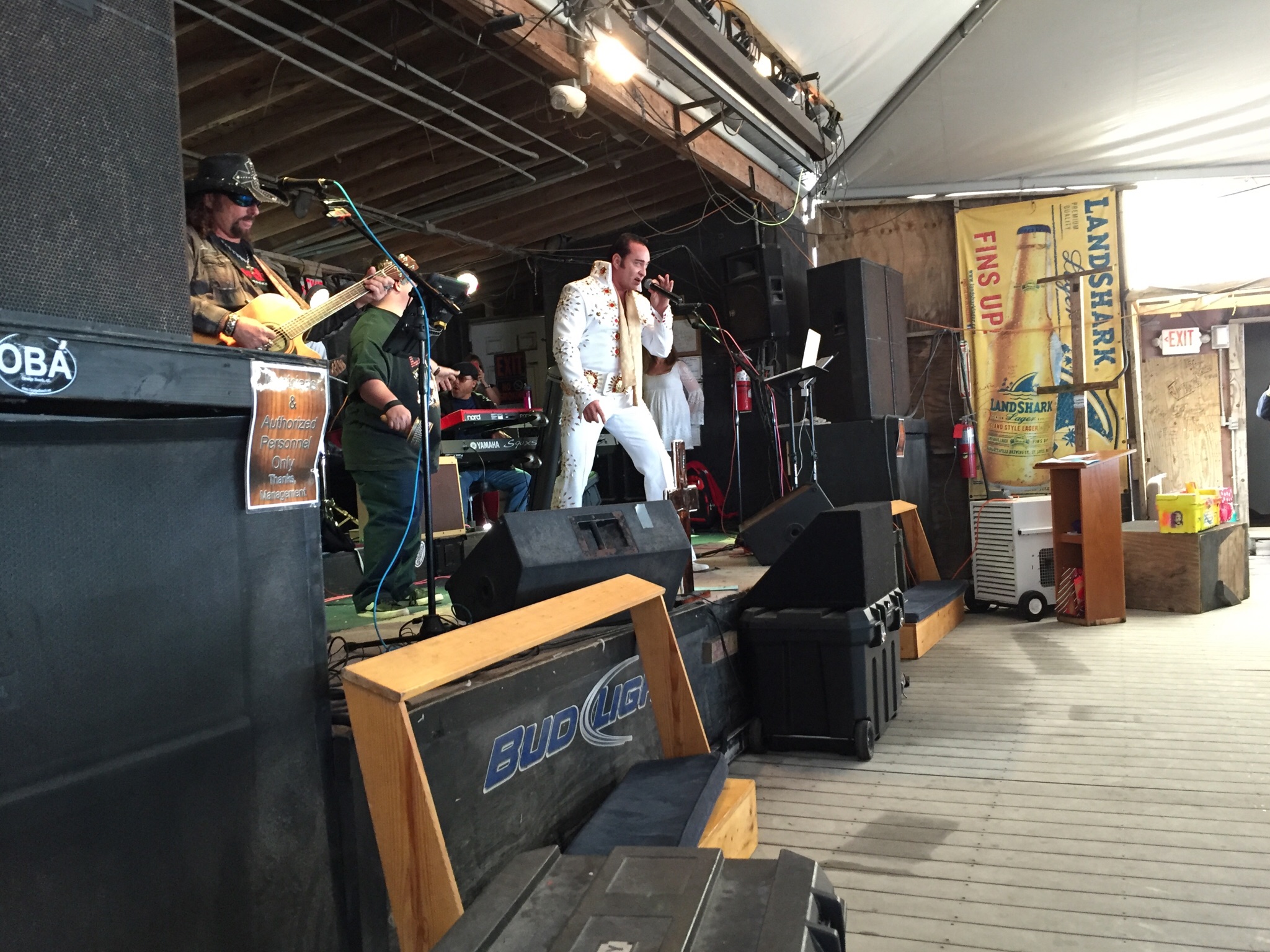 We went to church this past Sunday at the Flora-Bama. We thought it would be something different because of its location on the beach at the Flora-Bama lounge. Entering the packed tent and finding “Honky Tonk Hymnals” on two of the last chairs raised the anticipation level a bit more. The praise band was excellent and we had a special appearance from a celebrity. Not your typical church service but a lot of fun.