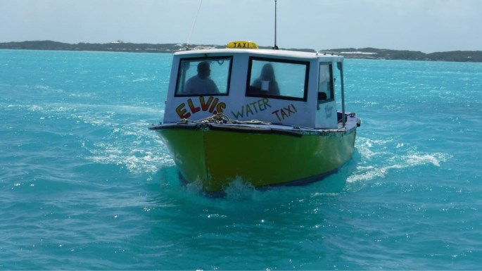 Three days after Mat left for frosty North Dakota, our son Brian and his girlfriend Jess arrived from Idaho for a visit. When Mat visited Noodin he got to have a taxi ride from the airport to the dinghy dock at Exuma Market and then a ride in the dinghy out to Noodin which was anchored nearby. Brian and Jess got to experience a little more local flavor and got to have the taxi ride but also had to take the water taxi to our anchorage across the harbor.