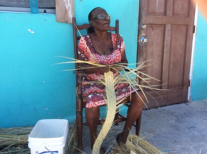 When we were in Black Point earlier we saw local women sitting outside weaving with palm fronds. We wanted to find one of those women who had baskets to sell. We came across Elouise sitting in front of her house. She wanted to chat and shared stories of her fishing the harbour in her younger years. She also sold us a couple of nice small baskets.