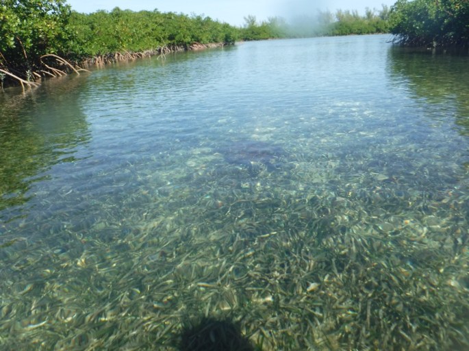 The depth of the creek was mostly in the 2-3′ range, just deep enough for dinghy exploration. The creek narrowed as we continued and had different branches to explore. We lost count of the turtles that we saw but guess the number to be about three dozen. Add to that ten rays and three sharks and it was an awesome trip.