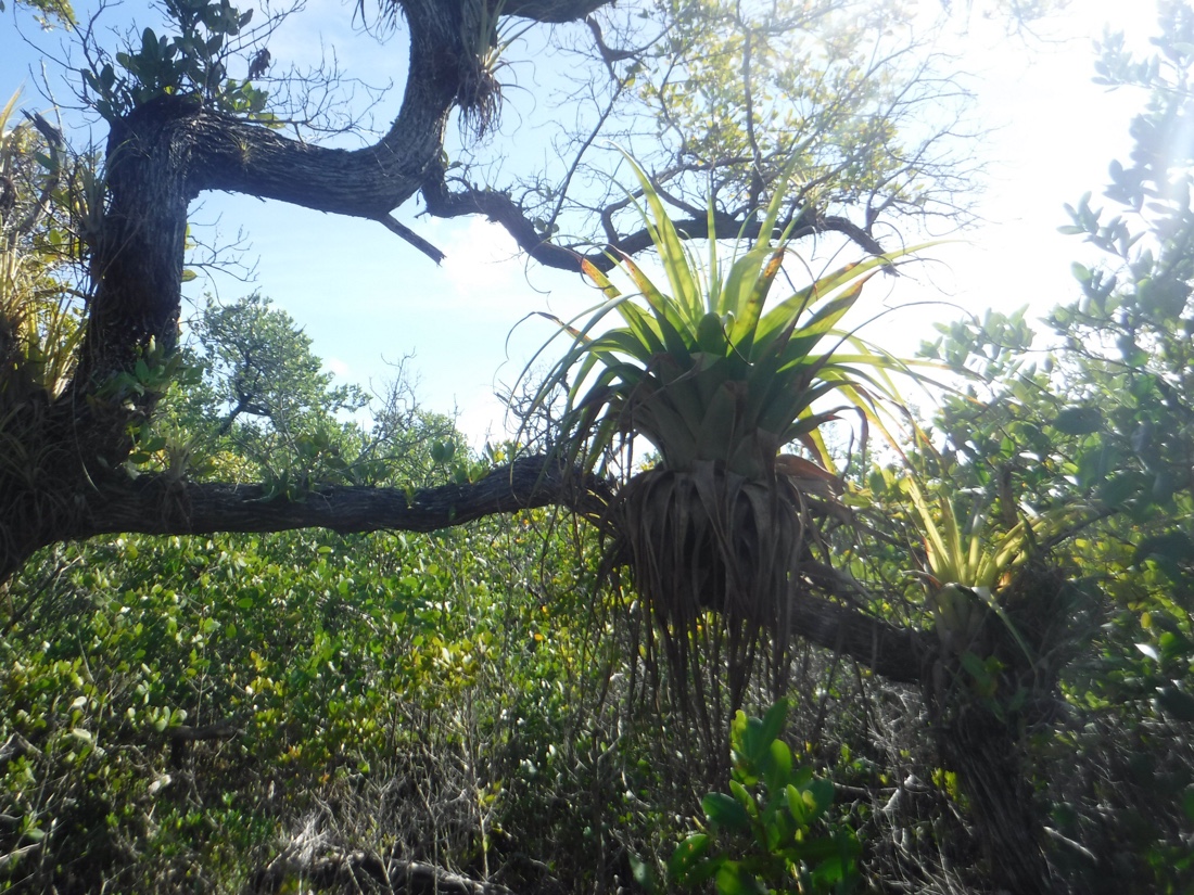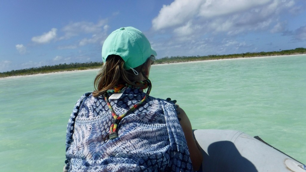 One of the fun things to do on many Bahamian islands is to explore the mangrove creeks by dinghy. They’re usually shallow so you need to go on at least a mid tide and preferably a rising one. Good light is also essential for seeing the water depth. The mangrove creek at Conception was a bit challenging to enter because of surf and a shallow bar at the entrance but it was worth it. The water inside quickly turned to a turbid green color making it difficult to clearly see the sea life but there were many turtles scurrying away from our boat as we passed. It’s difficult to show in pictures but the sandy beaches made for beautiful scenery.