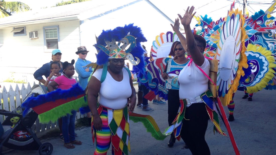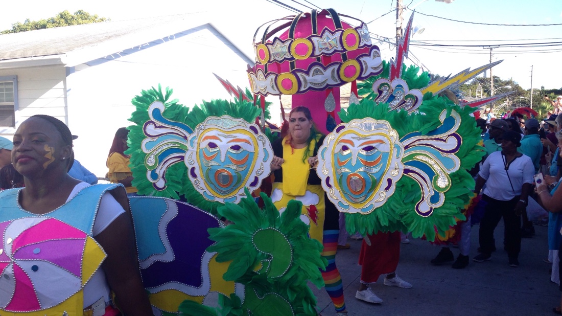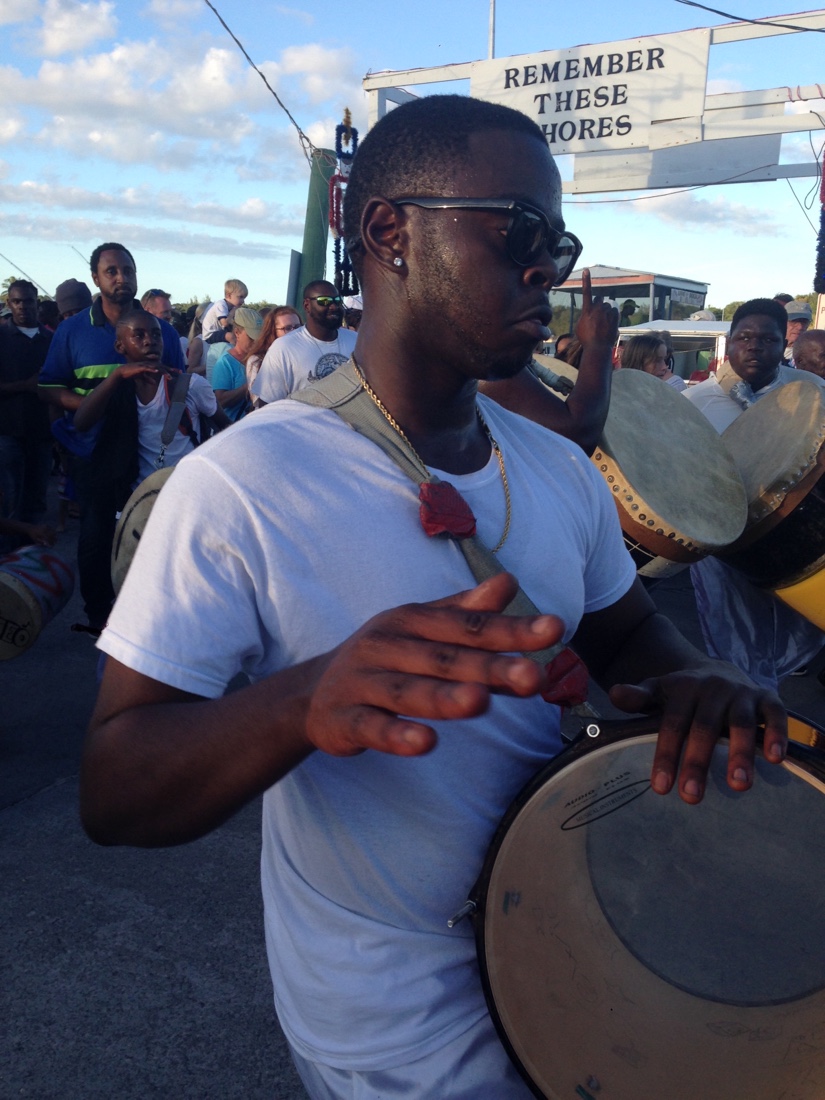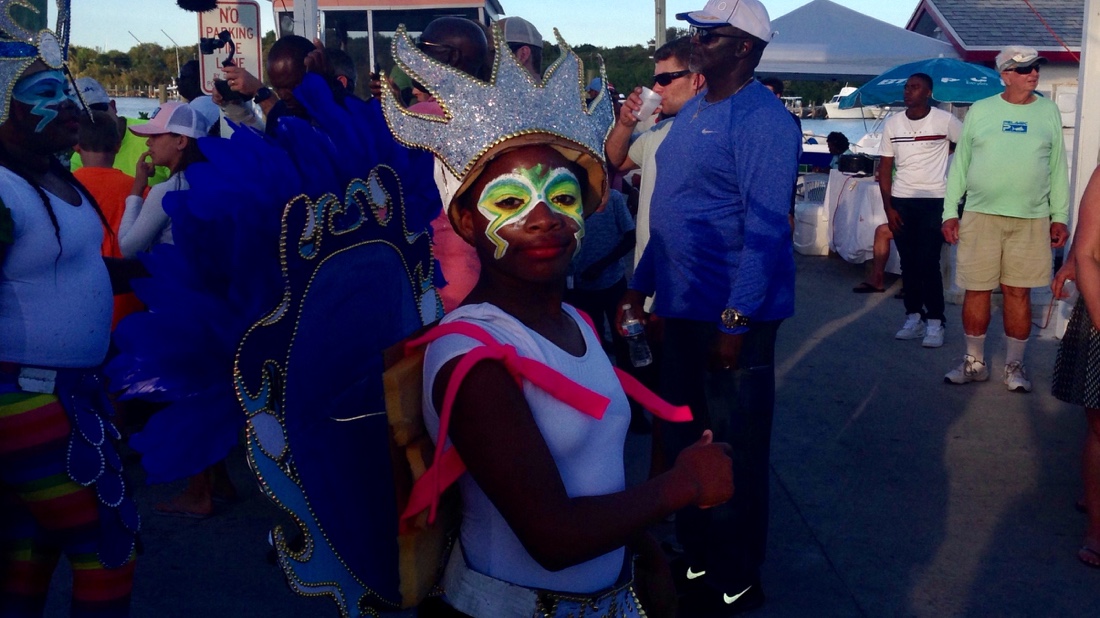 Junkanoo is a Bahamas street parade with dancing, music, and costumes held on Boxing Day and New Years Day. Green Turtle has Junkanoo on New Year’s Day and we made a point of staying for it. The normally quiet streets of the settlement of New Plymouth were filled with vendors and spectators. In typical Bahamian style, the parade started about an hour late giving everyone a chance to eat, drink, and enjoy each other’s company.