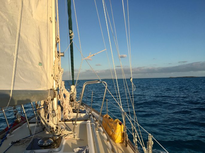 We left the Little Harbour cut in predawn darkness to hit slack current on our way to Eleuthera. The wind was 15-20 knots just aft of the beam which made for a fun and speedy sail to Eleuthera.