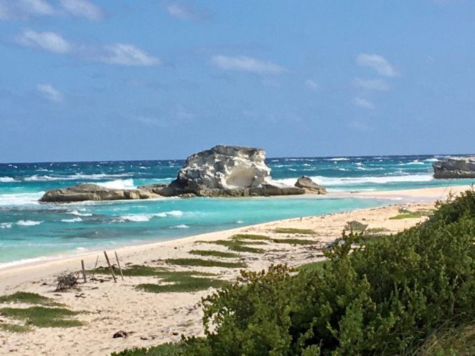 The ocean side beaches are stunning and secluded but require some work to get to. First a dinghy trip that may or may not be a wet one. Then walking or hitchhiking to the mile long access roads. Once there you’re alone. Speaking of hitchhiking, it’s a great way to get around. Sometimes you’re in a car and other times you ride in the back of a truck, but you always get a ride and the people you meet are great.