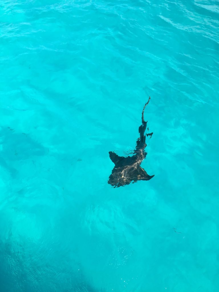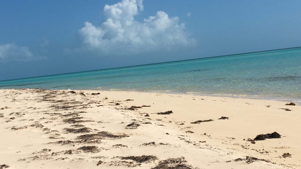 From Cat we sailed into the Atlantic to reach Conception Island which is a Bahamian national park. It was actually a motorsail hard on the wind for most of the trip. Not something that we normally do and I was tempted to fall off the wind and sail to Long Island. But we pressed on and were rewarded with a landfall on a beautiful uninhabited island. The anchorage was calm and the water clear when we arrived. It was absolutely beautiful. We dropped the anchor in 12′ of clear water and clean sand. Just after dropping the anchor I looked down and saw a “rock” that hadn’t been there moments before. The “rock” turned out to be a stingray that came to checkout the anchor. The anchorage would have been a great spot for swimming if it hadn’t been for the large lemon shark that also came to greet us. His slow, shallow passes around the boat convinced us that we were happy to stay in the boat.