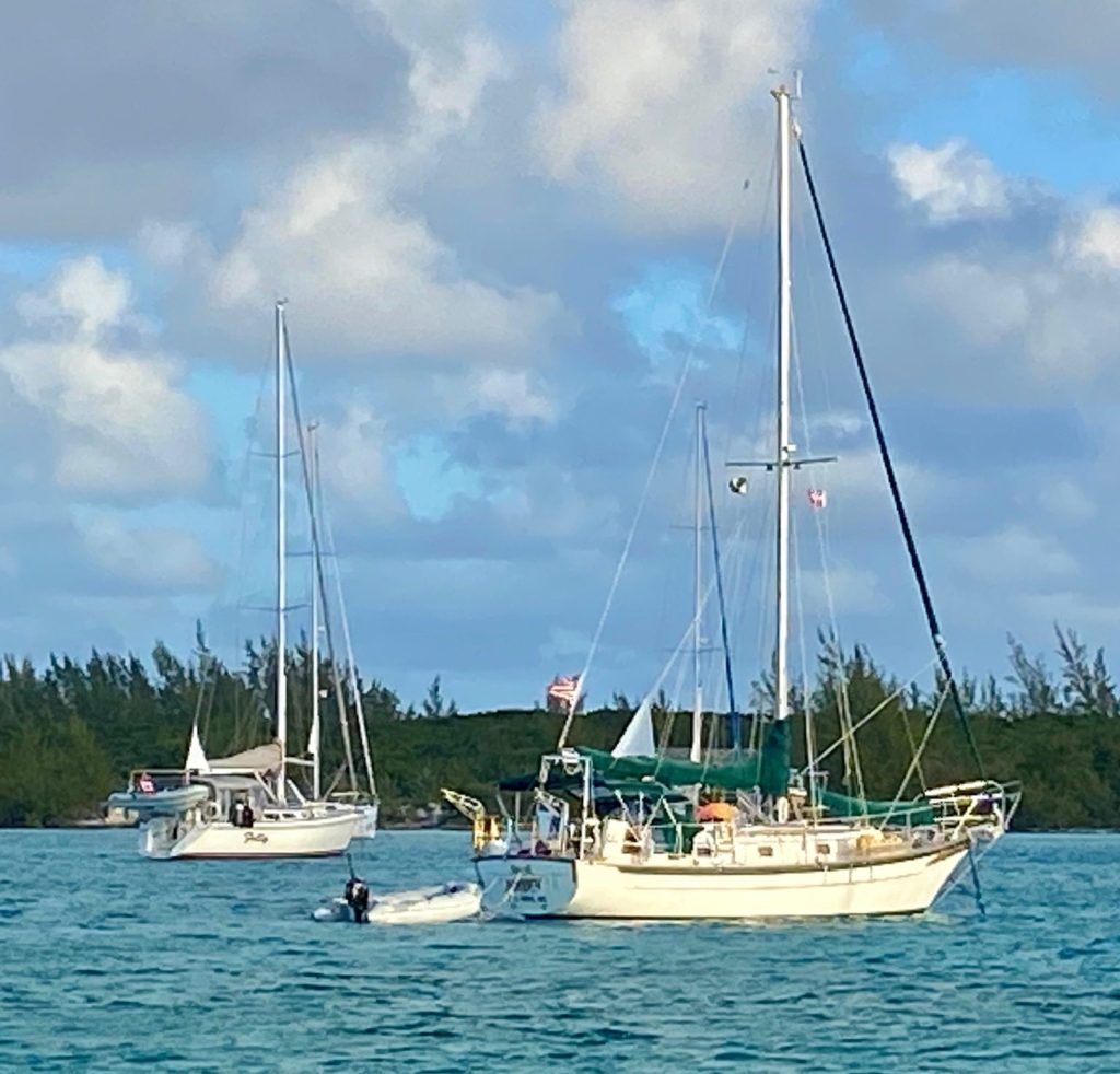 Noodin and La Peregrina at Anchor off Bitter Guana Cay.