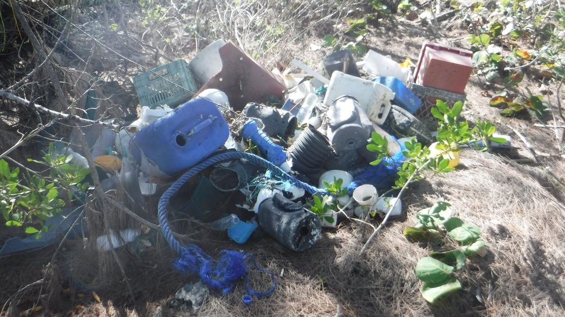 The other day we were anchored off of Deep Sea Cay and found the beaches strewn with garbage. Many of the east facing beaches have a lot of debris that has drifted ashore from somewhere in or across the Atlantic. The beaches on Deep Sea Cay are located in a great spot to be enjoyed by cruisers so we took the opportunity to give back a little bit and cleaned up about 300 yards of beach. Most of the trash had obviously come off the ocean and most was plastic of some variety. We weren’t able to haul the garbage away but we were at least able to collect it and pile it out of sight.