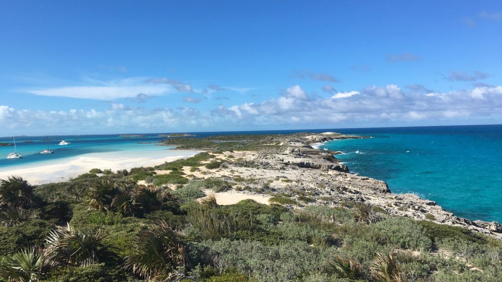 Exuma Sound to the right, Great Exuma Bank to the left (from Warderick Wells)