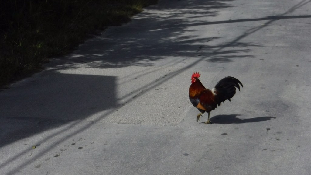 Moo Cow Fishes at Rock Sound Wehunkered down at Rock Sound for about 5 days while we waited out some windy weather. We enjoyed walking around the settlement and visiting with the friendly people. We saw more chickens roaming the streets of Rock Sound than any other settlement which is saying something. Phebe fished quite a bit but the only real luck was catching these crabs that were trying to steal her bait. From Eleuthera it would be on to the Exumas.