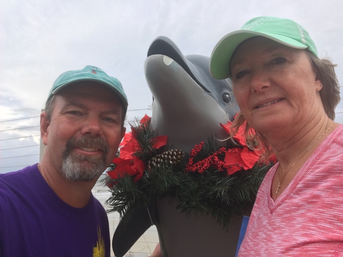 Just a Small Portion of the Provisions that Phebe Hid Away We got launched into the North River November 25th and began our journey south. Our plan was to cross to the Bahamas from either Ft Pierce or Palm Beach Florida. Our preference would be to move south in Florida by sailing in the Atlantic but the weather wasn’t cooperating. Option 2 was to motor down the Intra Coastal Waterway for roughly 300 miles. It was getting cold in Georgia so off we went down the ICW. We stayed a couple of nights in St Augustine and a few nights in Marineland to sort out a couple of boat issues. While staying at the Marineland Marina we got to visit the dolphins at the Marineland park.
