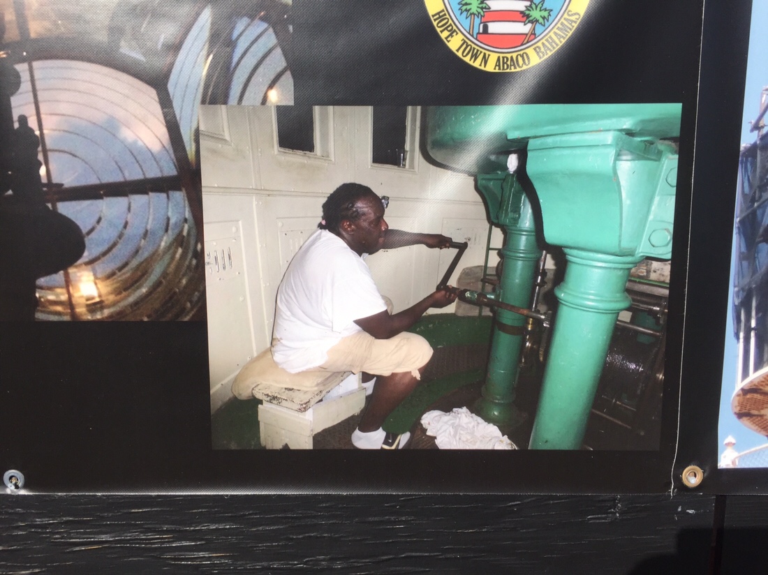 One of the greatest things about Hopetown is the lighthouse. It’s the only remaining hand wound kerosene burning lighthouse. We’d climbed to the top of it several times but Rocky arranged a special treat for us and we got to participate in lighting the lens lamp and winding the mechanism that makes the lens rotate. We met the lighthouse keeper, Jeffery, just before dark and climbed the 101 steps to the top.