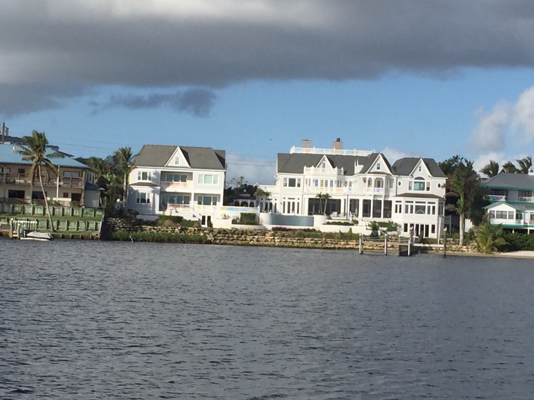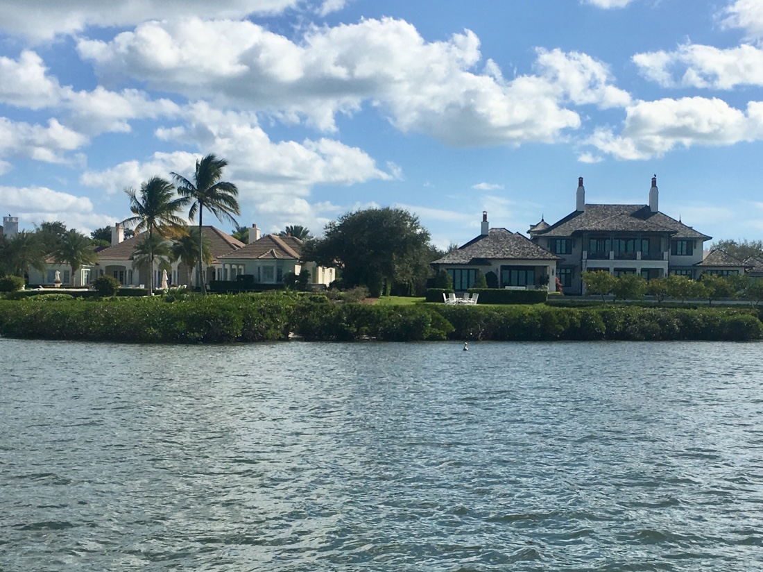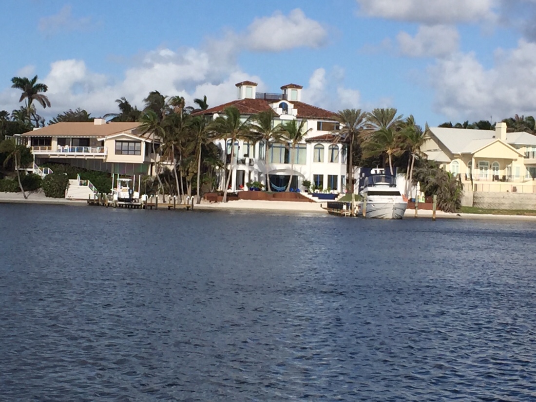 From Peck Lake it was about a six hour trip down the ICW to Lake Worth. This is a stretch of the ICW with many bridges and fancy homes. There were 6 bridges with 5 of them opening only on the hour and half hour. We tried to time our arrival to be there for the opening but no so early that we had to hold station and wait. Waiting in a sailboat when there is wind and current is not always easy. We missed one opening because the bridge operator decided to open early for some reason but other than that it was a smooth trip.