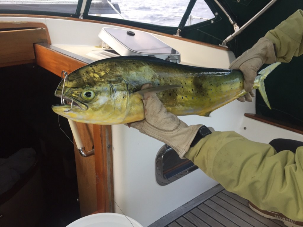 It was time to move on from the Abacos after a truly wonderful stay there. Eleuthera was to be the next stop and we had plans to make the passage with friends on Bernoulli when the weather allowed the 50nm open ocean passage. The ocean was currently being spirited with fairly large swell coming from the east while the Sea of Abaco was to get fairly strong winds from the northwest. Team Noodin made the decision to hide from the northwest winds in the “Bight of Old Robinson”, a large bay near the cut we would go through to get to Eleuthera. This ended up being a poor decision as some of the ocean swell made it through to our anchorage. Swell is not so bad if it comes from the direction of the wind but in this case it didn’t. Noodin pointed into the wind and the swell was hitting us on the beam (side) creating a miserable combination of pitching and rolling. Something I call random 3-dimensional motion. We spent 2 nights there and before we had left I started taking sea sickness meds which we don’t usually take even while at sea. Bernoulli joined is the 2nd night and the following morning it was out the Little Harbour Cut and off towards Eleuthera. Phebe got our fishing gear in the water as soon as we were through the cut and immediately hooked up with a nice little Mahi. The little ones are called “chickens” here but it tasted nothing like chicken.