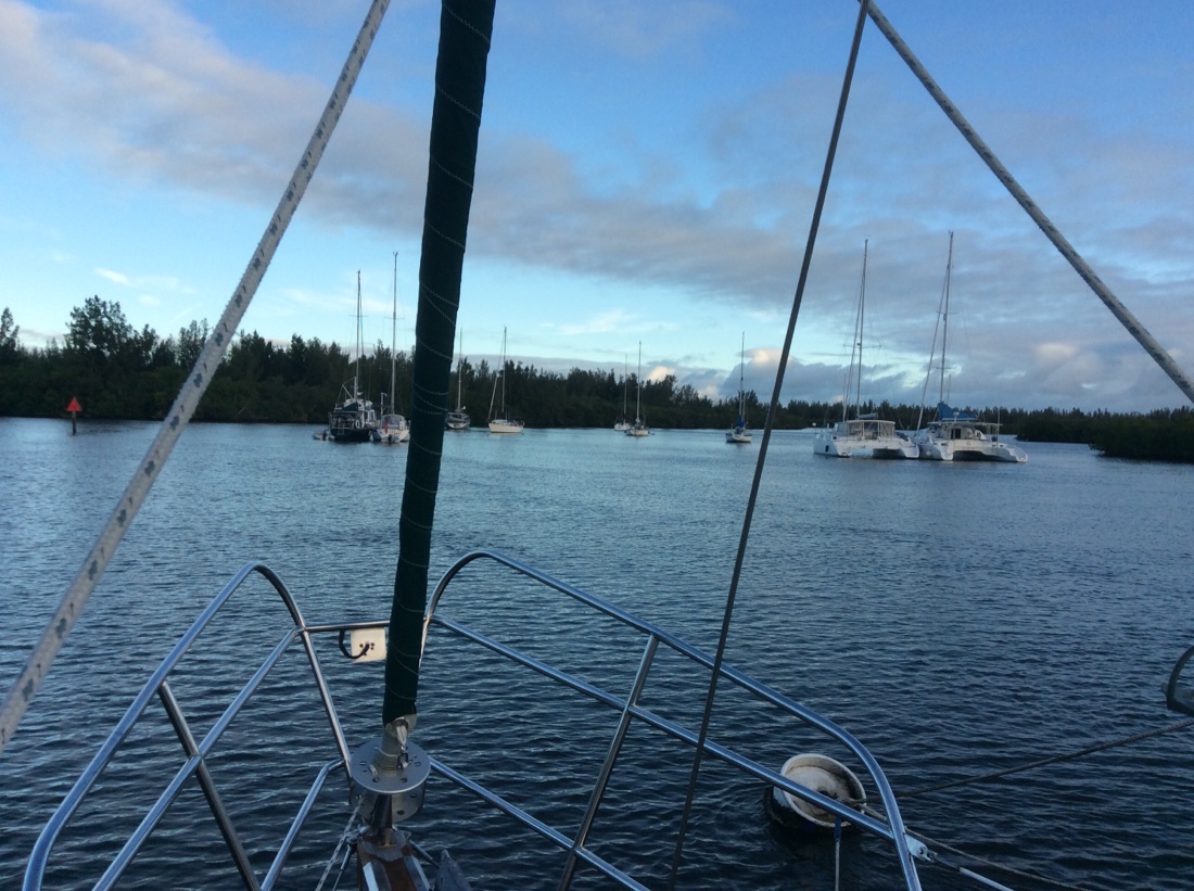 We’ve been holed up at the Vero Beach Marina for 10 days waiting for the right weather to cross the Gulf Stream and go to the Bahamas. We’ve had lots of company with three boats rafting together on most mooring balls waiting to do the same thing. The weather is finally right for a crossing and we’re off in the morning. The plan is about 30 hours and 160 miles to Green Turtle Cay where we’ll clear customs. Watch the dots move on the where’s Noodin tab.