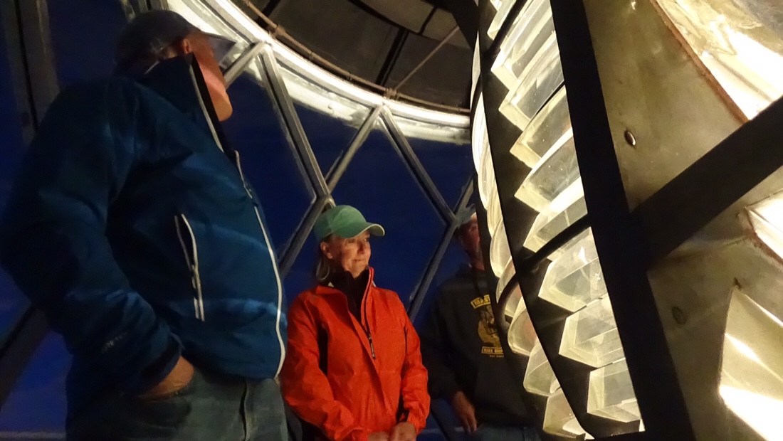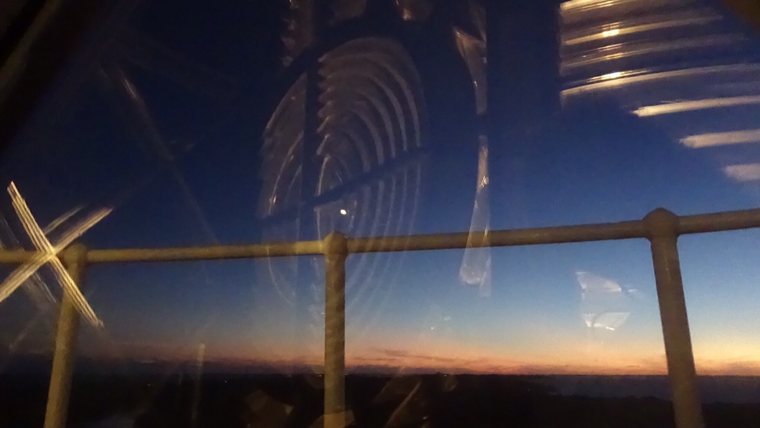 Jeffery climbed inside the lens to light it as we stood by. After the lens was lit, we took turns winding the mechanism that would keep the lens turning for the next two hours. Every two hours after, Jeffery would climb the steps to wind it again. Thanks to Kara from s/v Vela for the following pictures.