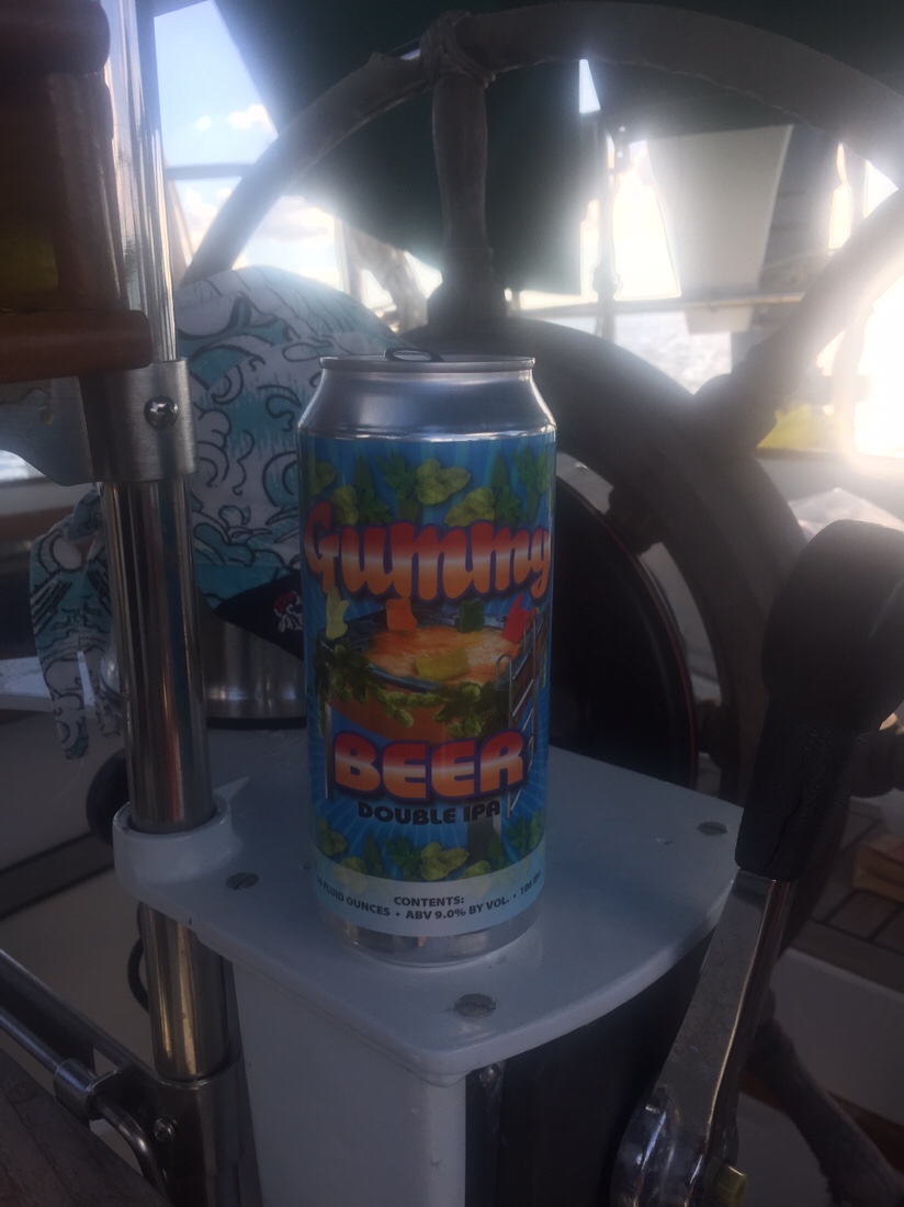 The weather had been sketchy for crossing the Gulf Stream but we had a weather window to make the crossing a couple of days after arriving in Lake Worth. The crews of Noodin and Airbender made last runs to the grocery and liquor stores. Plans were made to raise anchor the next morning and proceed out the Lake Worth inlet and head for the Little Bahama Bank. We’ve now learned that a cruisers “plans” are really nothing more than ideas as things often change rapidly. This was one of those times. As we were putting things away for our crossing we noticed excess water in the bilge. The bilge pump float switch wasn’t working so we manually operated the pump. It moved water but it smelled hot. We made the decision to stay in the states and make repairs rather than cross the Gulf Stream with a marginal bilge pump. We reluctantly called Jeff and Karen and let them know that we weren’t leaving in the morning but encouraged them to go. There wasn’t supposed to be good crossing weather for another week or more so it was important to go now if possible. They were able to hook up with other friends to leave in the morning and we were happy for them. The next morning, after a leisurely breakfast, we diagnosed and repaired the float switch problem and determined that all was good with the pump. It was about noon by this time but we decided to haul anchor and head for The Bahamas anyway. We had basically calm weather and motor sailed for about 24 hours to arrive at Powell Cay in the Abacos. We had saved a couple of special passage beers for the occasion.