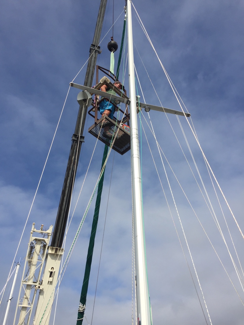 Ron Being Lifted by Crane to Inspect the Mast Top Light